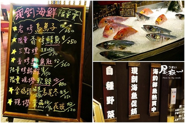 ▼屋麻一主打的就是採用海釣鮮魚做出精緻美味的平價料理!門口的小黑板都會寫著當天限量的現釣海鮮,因為老闆的父親很喜歡釣魚,所以看釣到什麼魚當天就會出現溜!也有一些深海魚種像是旗魚等大型魚類是從台東漁港直送來的,新鮮看得見!