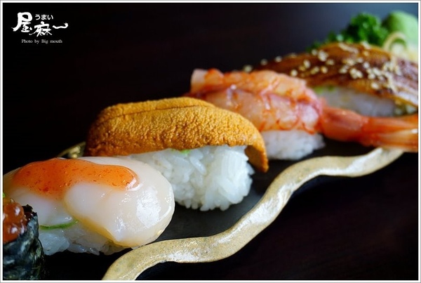 ▼這一顆顆華麗繽紛的握壽司看得大口眼花撩亂啊!有星鰻、牡丹蝦、海膽、北海干貝、鮭魚卵、鮪魚、製燒鮭魚、生花枝佐魚子醬、比目魚等等,料好實在,看得大口都不知道該從何下手好呢!