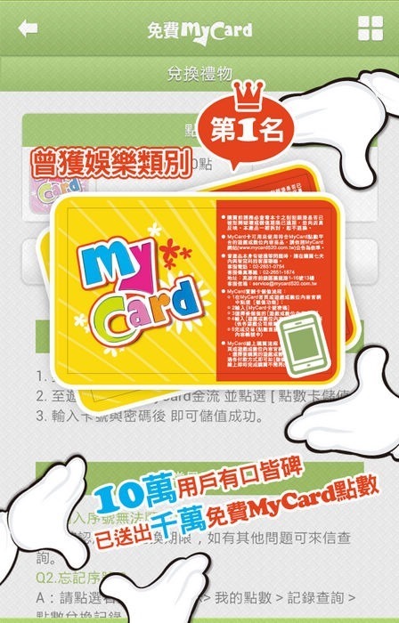 智冠科技自行開發APP-免費MyCard榮獲本屆網路最佳人氣獎