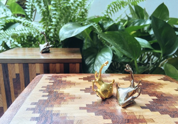堅持保留創作物手感與細節的「KWEN STUDIO」說明,回顧為生活製作藝術的歷史,生命與力量是兩股不可某滅的重要元素。「KWEN STUDIO」融合金屬質感與交織的木材,完整展現材質豐富的生命樣貌與力量並將物品之美發揮至盡。精細的木紋質感搭配金屬甲蟲墜飾,彷彿回到山林小路之間的情境氛圍,看著欲鑽出木盒上的獨角仙,喚起你我心中的童趣,再次重新體驗生活細節的感動。「KWEN STUDIO」透過紮實的原木素材,並進一步融合金屬生物形態,成功塑造富十九世紀末的手工感,卻又不失當代設計風格的工藝品。