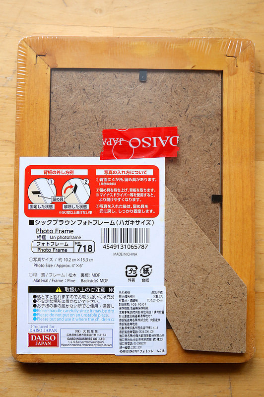 大創百貨 DAISO 的各式相框真是物美價廉,每個只要$39元,像是這個松木材質的相框,可以放一般4X6大小的照片(10.2cmX15.3cm)。