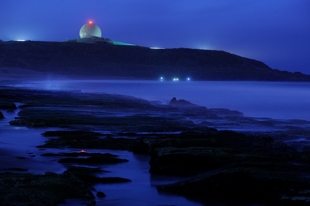 透過黑卡技巧,不經後製實現了高反差的畫面。雷達站的白色球狀防護罩與紅色燈光,在一片藍黑色調的畫面中帶來視覺反差與對比,讓畫面更顯生動。