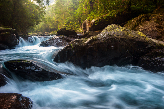 利用慢速快門凍結水流路徑,創造出充滿動感的水流影像。拍攝時需涉水而行,在水中架設三腳架。除注意自身安全外,更要避免水流沖激造成相機晃動。