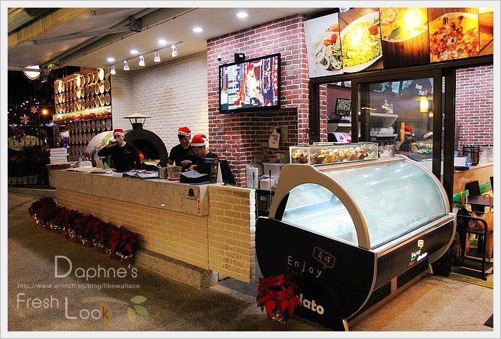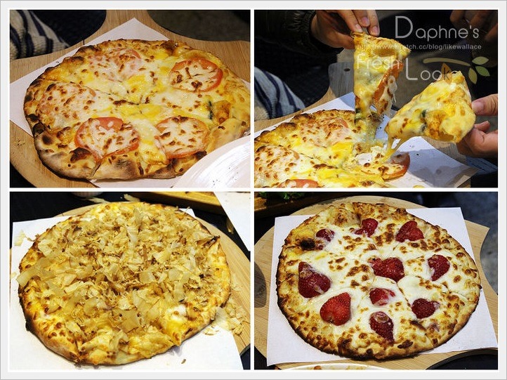 這裡的披薩是高溫烤,都是薄餅皮,有蕃茄的是經典瑪格麗特披薩、和風章魚燒披薩、美莓藍莓優格冰淇淋披薩,與上圖的冰淇淋一起加著吃。這裡的薄餅皮披薩口味偏清爽,料不油,有對我味。