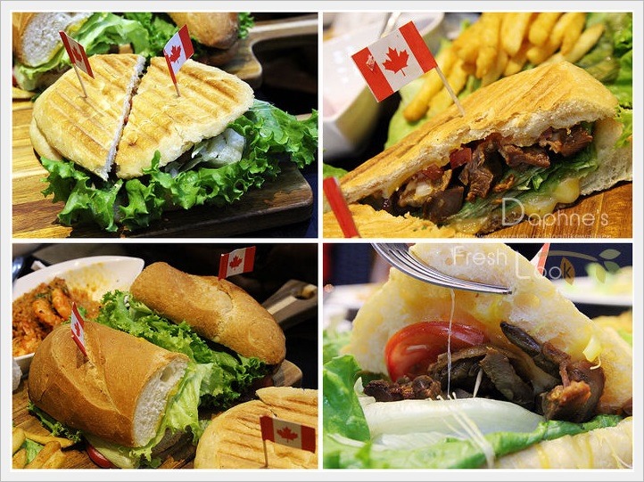 義大利傳統三明治帕尼尼有佛卡夏與魔仗麵包可選擇,佛卡夏夾的是黑胡椒牛肉起司,魔仗麵包內是大阪照燒雞。料多,內餡調得不油不鹹。