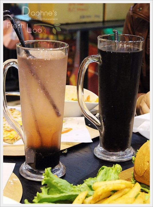 同行格友點的可樂及藍莓汽泡水。