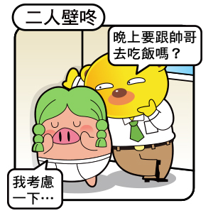 二人壁咚:說白一點就是辦公室戀情嘛~難得有機會當然要好好把握「咚」一下囉!
