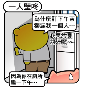 一人壁咚:比較像是一個人受了委屈(在職場難免嘛),想要一個人靜一靜,通常在樓梯間或是小房間裡看到…
