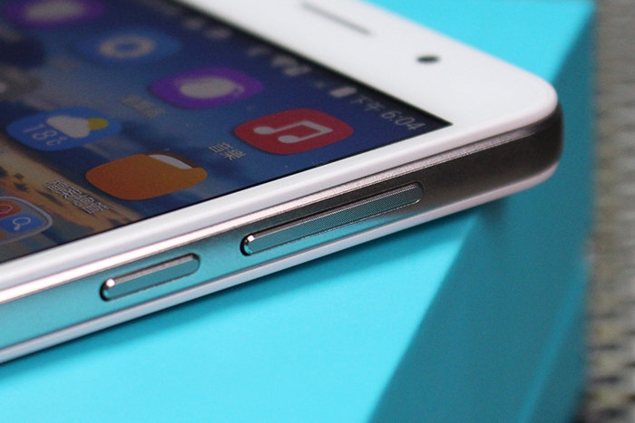 來看一下外觀設計,榮耀 6 側邊類金屬鑲嵌,讓整機更有質感,全機也只有 130g 的重量。