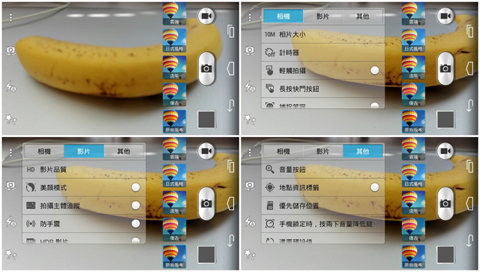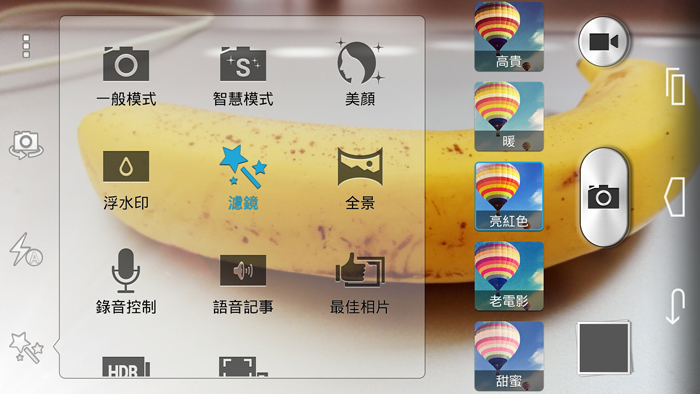 拍照介面方面,一般的濾鏡、對焦模式、HDR、全景、美顏模式…一應俱全。