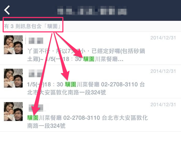 搜尋欄位可不止搜尋對話視窗中的關鍵字,包括聯絡人也可以透過搜尋功能來過濾。倘若搜尋的關鍵字有包括著聯絡人資訊與對話記錄,LINE 也都會通通的列出在下方讓你一覽無遺,蛛絲馬跡都不錯過!