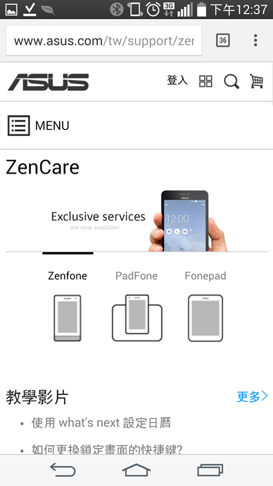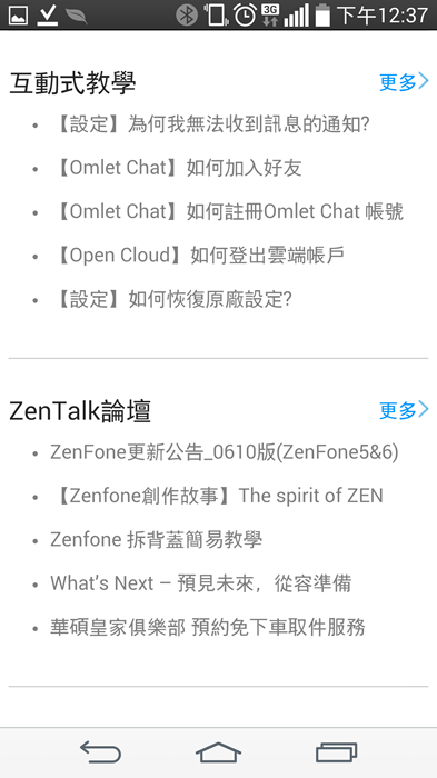 “ZenCare”為ZenFone用戶設計的專屬服務,有原廠精心準備的玩家教學,有操作影片、互動教學、線上手冊、玩家論壇、FAQ。所以產品說明書不在身邊都沒關係,這裡都幫你建好。