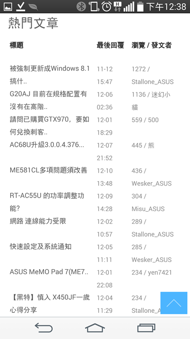 在華碩論壇這個功能是個人認為相當實用的功能,在使用產品遇到問題時,一般都會先上網查找使用相同型號的網友是否也有遇到一樣的問題?他們的處理方式為何?是否有簡易排除方法?因有些問題其實並不是產品的問題,而是我們對其了解不足,不會使用或是使用方法錯誤,所以產生我們認為是”問題”的狀況。而華碩論壇將華碩家族旗下產品分門別類歸納所有討論文章,讓使用者在搜尋問題時可更容易方便。