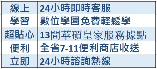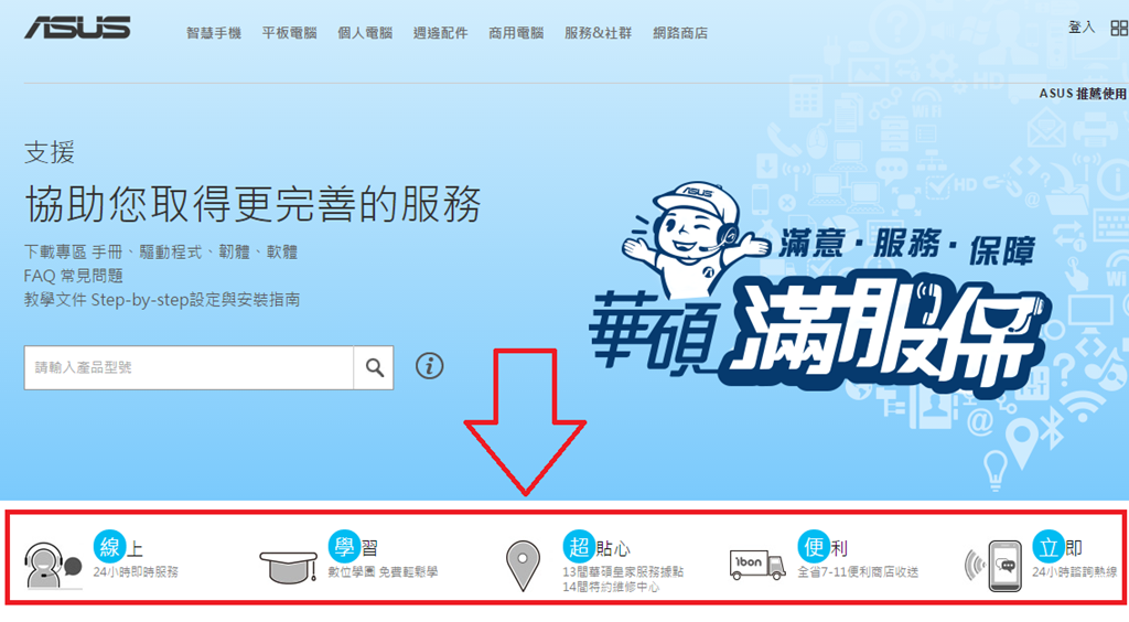 當然ASUS除了24小時即時客服的服務外,還推出滿服保的完整服務系統,讓客戶滿意、得到完整服務、購買產品更有保障。像是線上的24小時MyASUS服務、免費數位學園讓你化身達人、多個服務據點與特約維修中心、可在全省7-11收送貨、還有24小時諮詢熱線,都讓人感受到ASUS的用心與服務,也讓消費者可以更安心的購買產品。