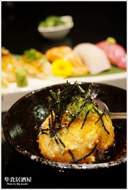 「隼 食On Time居酒屋」的環境相當寬敞舒適,讓每位客人都有足夠的空間享用美食;另外B1私宅包廂式的場地更是深受商務人士歡迎,常常會到這裡包場辦活動!餐點 選擇多多,其中讓大口印象深刻的包括隼食生牛肉、海景卷、胡麻豆腐、紫蘇蝦餅等,都讓大口覺得回味無窮;另外綜合握壽司、雞肉串、明太子雞翅也都在水準之 上,食材新鮮,師傅烤功還不錯,吃得出食材的鮮甜美味,也是頗為推薦的唷!夜晚下班後,不妨來這裡點上幾道菜小酌兩杯,都會讓人相當放鬆唷(未滿十八歲請 勿飲酒)!推薦給有興趣的捧友們,有機會一定要來品嘗看看,或許也會變成是你招待好友的私人招待所口袋名單唷!