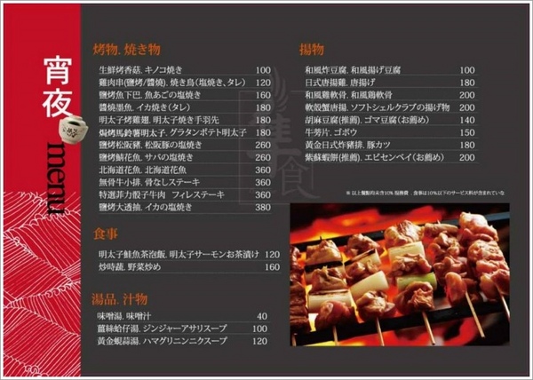 營業時間:10:30~14:00(午餐)、17:30~21:00(晚餐)、21:00~24:00(宵夜)(週日公休)