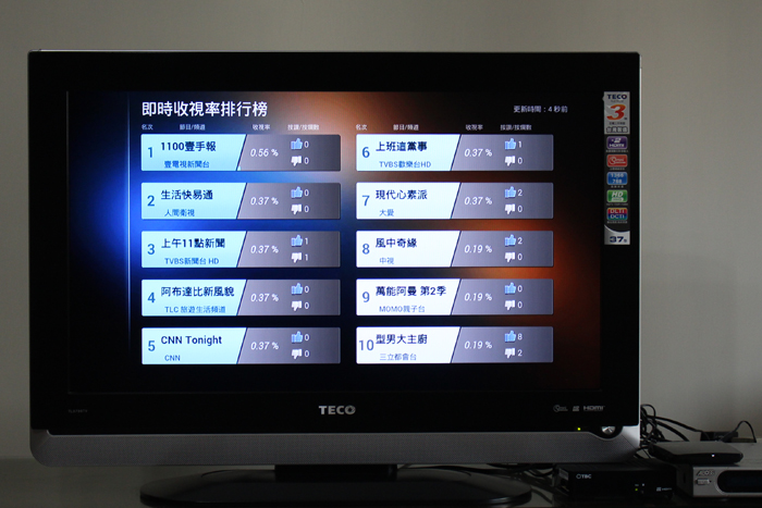 即時收視排行榜也是一個很大的突破,嵌入了有線電視的訊號之外,掌握每一台 OVO 的收視習慣,收視率調查精準度絕對超越傳統的收視抽樣調查,隨時掌握大家最關注的電視節目,也可做為選台依據。