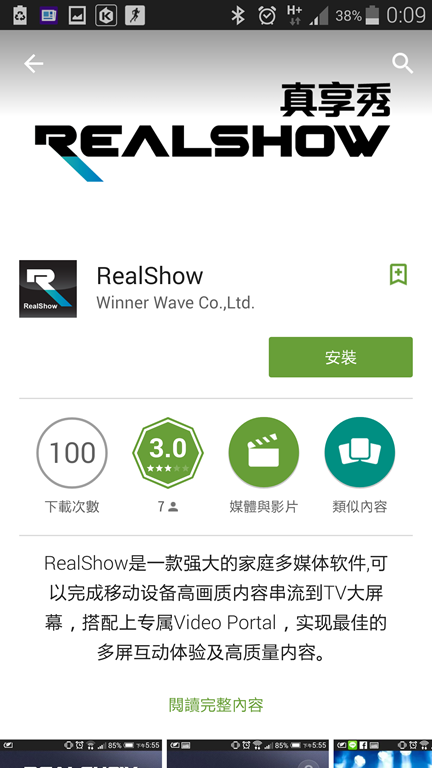 接下來就以Android手機為範例,來看看REALSHOW的功能。首先你必須先在手機上下載APP,只要搜尋REALSHOW就可發現。