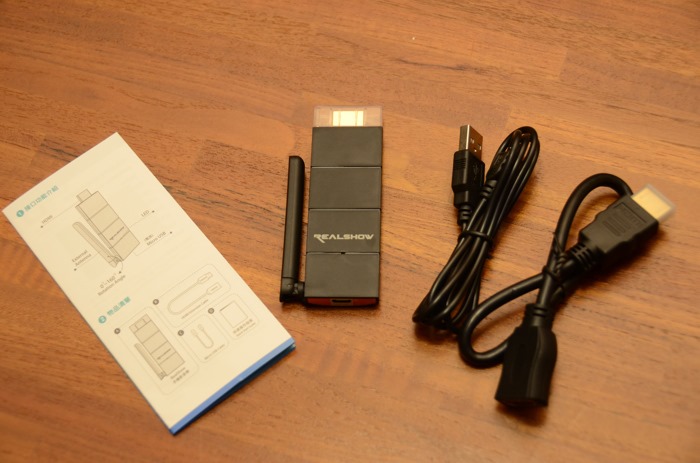 盒裝內除了REALSHOW本體外,還附上microUSB充電線、HDMI延伸線與說明書。說明書中有詳細說明各系統手機或是電腦的使用方式,很清楚易懂,安裝前一定要看過。
