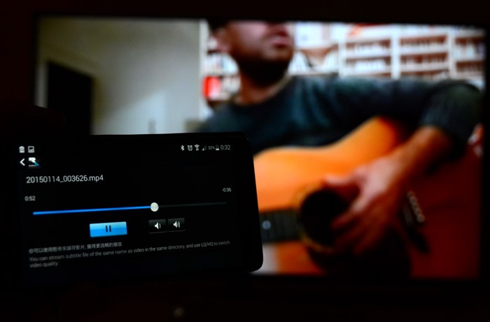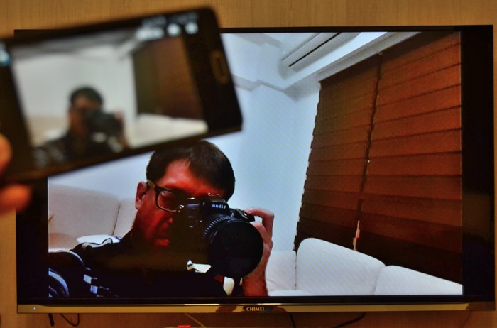 首先看到EZMirror的功能,他其實就是miracast,可直接將手機的影音投射到電視上,也就是如投影機一般,讓電視與手機的畫面同步,這樣就可以全家同樂。例如在進行知識王的問答時,就可全家一起幫忙回答問題,增加家庭互動。