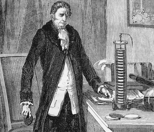 這位義大利物理學家亞歷山德羅·伏打在 1800 年完成了世界上第一個電池:伏打電池。