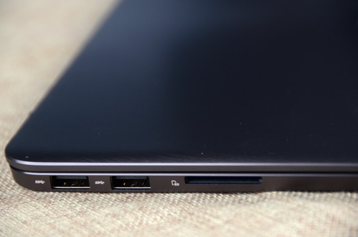 輸入輸出介面上,具有3個USB 3.0接孔,其中一個可以設定為關機供電,用以讓你的行動裝置能維持充沛電力。另外還有SD卡插槽、micro HDMI與3.5mm耳麥孔,對於經常需要移動的商務人士來說,很夠用。另外還可搭配USB 轉 RJ45接頭使用,在僅提供有線網路的環境下,還是可以連網工作。