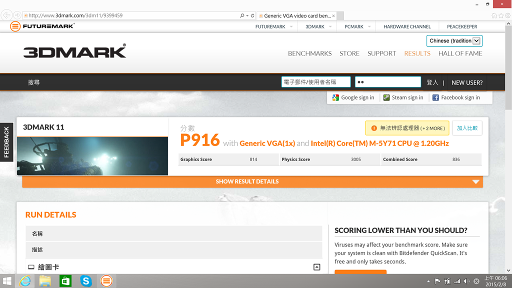 處理器部分是Intel Core M 5Y71 1.2 GHz處理器,搭配8GB RAM,內建Intel HD Graphics 5300繪圖晶片,系統部分使用Windows 8.1 Home Edition 64 bit,在商務上使用非常足夠。在ASUS自家的雲端空間部分,提供1年1TB的免費空間,