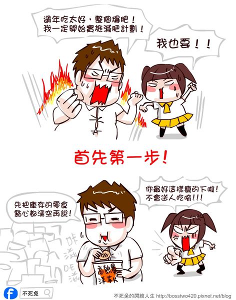減肥的第一步!一定要把週遭的零食點心通通消滅掉眼不見為淨!但不是消滅到自己的肚子去~可以拿去請同事或朋友吃~一起分攤熱量。
