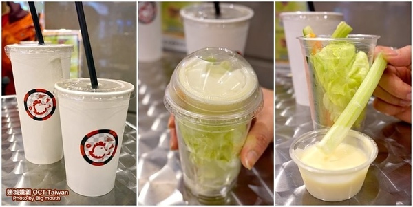 ▼ 吃炸雞一定要配飲料才過癮啊!於是我們點了一杯可樂(大)及紅茶(小),準備搭配邪惡的炸雞一同享用!另外先點了一份蔬菜棒佐百香果醬(39元),感覺可 以稍微減低一點點罪惡感!他們的蔬菜棒吃起來相當新鮮爽脆,一根一根的很方便拿起來沾附食用,搭配微微酸甜帶有點果香的百香果醬非常適合!