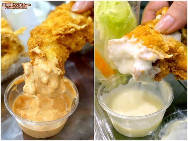▼嫩雞的香脆麵衣是由美國進口的炸粉混合多種香料而成,雞柳條經過多次的蛋液沾取,反覆包裹炸粉,吃起來有多重層次口感;他們的嫩雞是採用溫體雞肉,吃起來外皮酥脆,肉質相當軟嫩多汁,吃起來頗讓人驚豔!