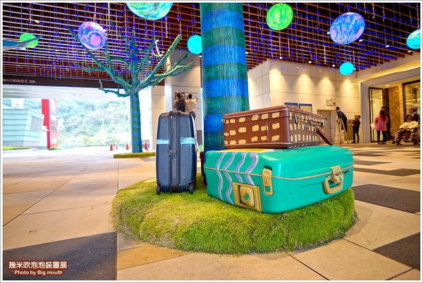 ▼巨大的行李箱象徵著無數的相遇與離散,人生其實就是一個旅行的概念,不停的往前移動也是一件非常美好的事情!「幾米吹泡泡裝置展」讓南港車站變得更加溫暖,也讓旅人的腳步稍微慢了一些。