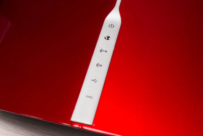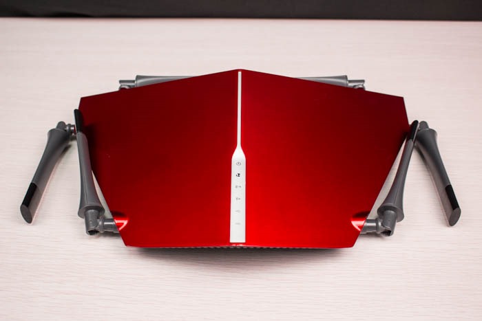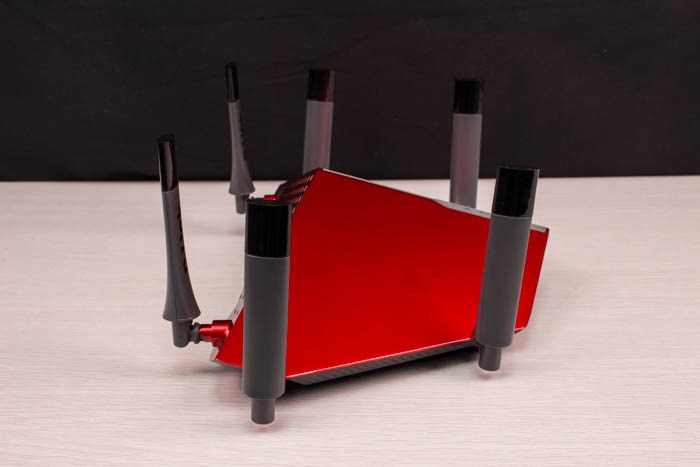 而 AC3200 DIR-890L 外型非常有特色,表面使用的鋼琴烤漆更提升了整個質感,你很難不被它吸引。配色部分共有黑、紅兩個,我們這款是紅色。體積比一般路由器還大了一點,所以需要騰出一點空間來擺放。