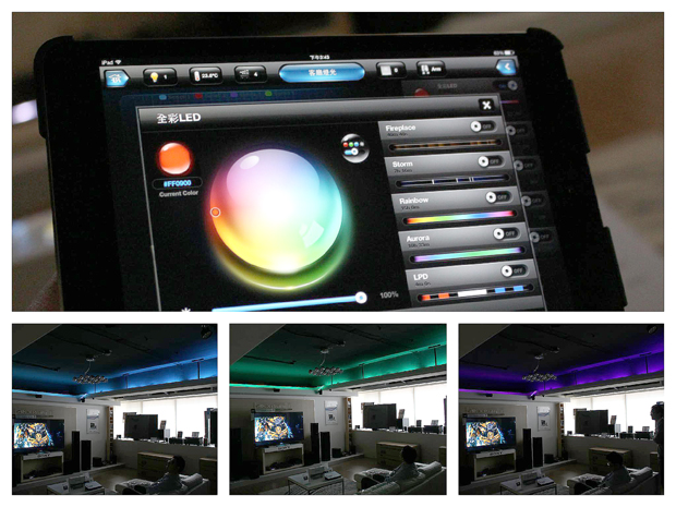 當然如果家裡很講究的,搞不好還有投影幕,我們選一下自己設定好的「看電影」模式,這個環境就自動幫你將窗簾關上、燈光調暗、投影幕放下來、投影機打開、DVD 播放器打開,一切都直接到位,不用 30 秒!