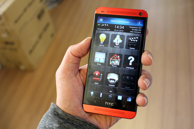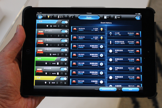 剛剛前面簡單介紹了一下建構智慧家庭的方式,其中提到了他們整合行動裝置的設計,像是智慧型手機、平板電腦、筆電都沒有問題,iOS 或 Android 都有支援,真的很方便!