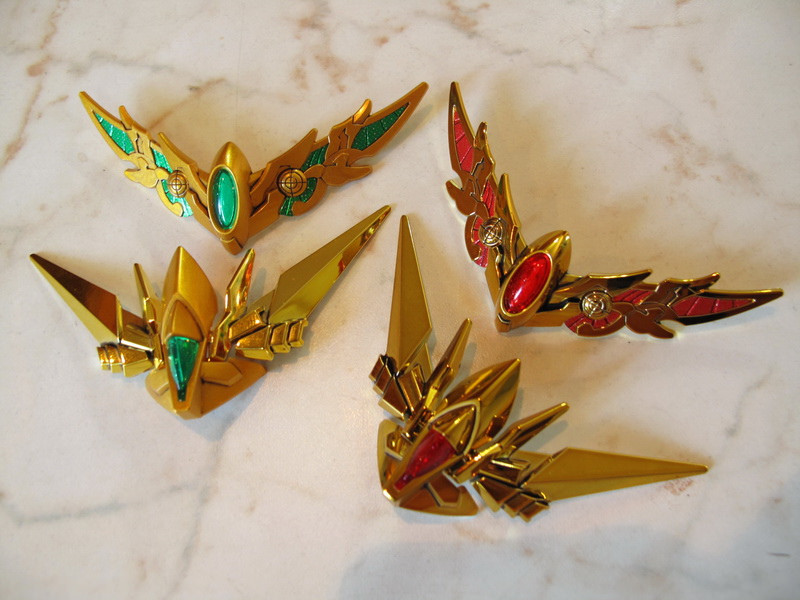 而SD世界中的 Knight Unicorn Gundam則反過來先發行了綠框,之後才在限定的PB商店發行了紅框版:這款並不只換成紅色,而是加了亮粉BlingBling效果的透明紅色零件,此外白色外裝甲部分是所謂的”鈦”塗裝–也就是超級有質感的 “Titanium Finish”–深色是亮面的Gloss Injection,根本漂亮極了!