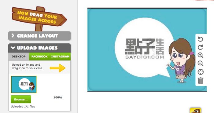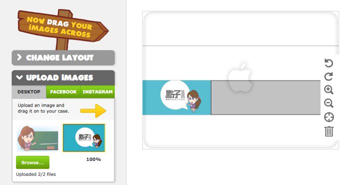 若我們只是想要簡單地把一張照片或是設計好了的圖放上去,也能直接選擇單一區塊後,再使用拖曳的方式把圖片放入設計方塊之中。