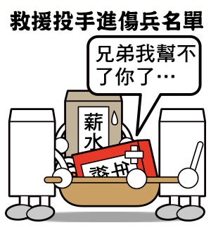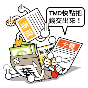 薪水先生就像我們一樣…薪水只有一袋,但要應付的費用卻數不清;而我們人只有一雙手,但同樣要應付的工作也是數不清~~~希望工作多的同時,薪水先生的厚度也可以等比率的變大…