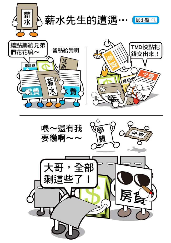目前薪水下來後大概都會遭遇的三種輕、中、重度三種狀況…薪水先生有夠歹命啊…