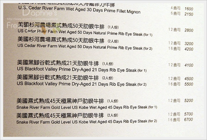 既然是以牛排為主打的餐廳,牛排的選擇當然最多,有分區域、部位、溼式或乾式熟成的牛排。據美國肉類出品協會公告的2015白金級美國牛肉認證餐廳名單,歐華酒店的地中海牛肋排館再度名列其中。