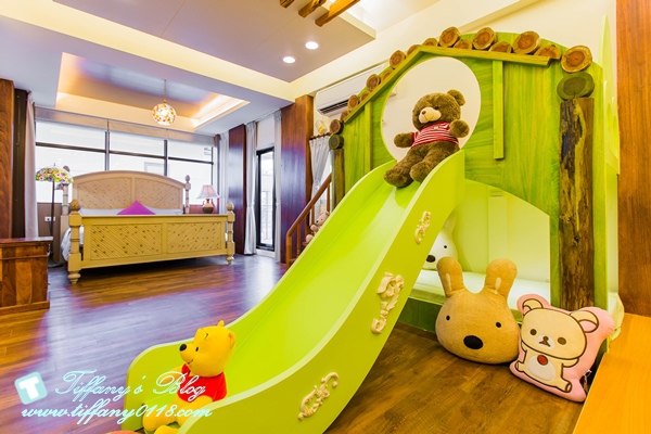 將其中幾間房間改成現在最夯的溜滑梯親子房型