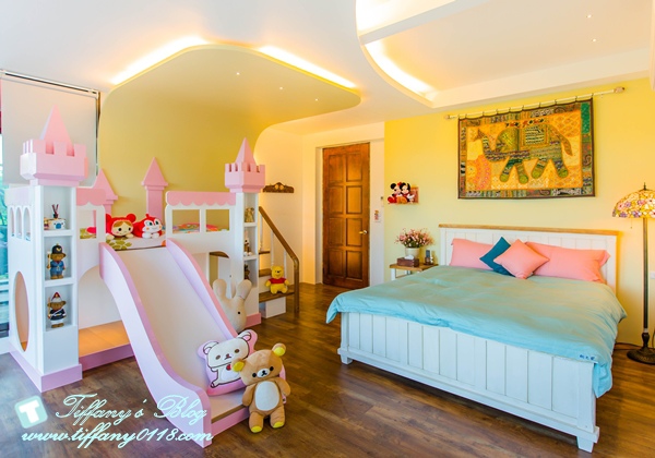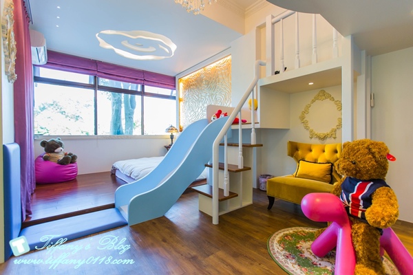 我覺得現在這種溜滑梯親子房都佈置的好夢幻好可愛