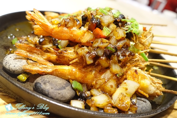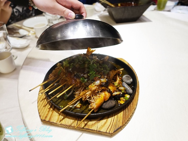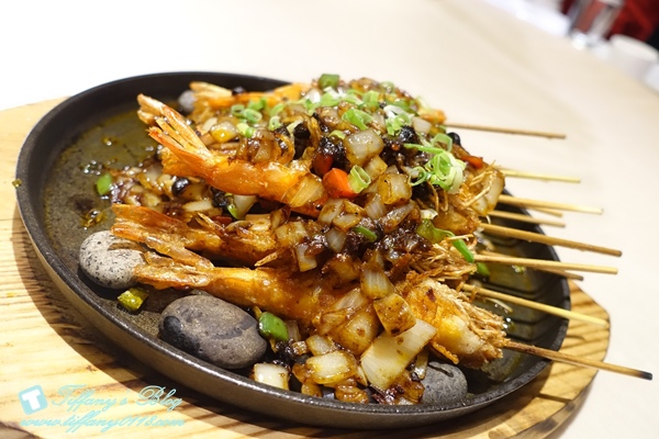 這道鐵板石烤蝦一送上桌時全場驚呼