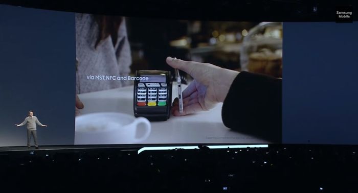 今天發表會也有提到一個新的支付功能- Samsung Pay,也就是使用者可以透過支援 Samsung Pay 功能的手機在商店直接進行付款動作。