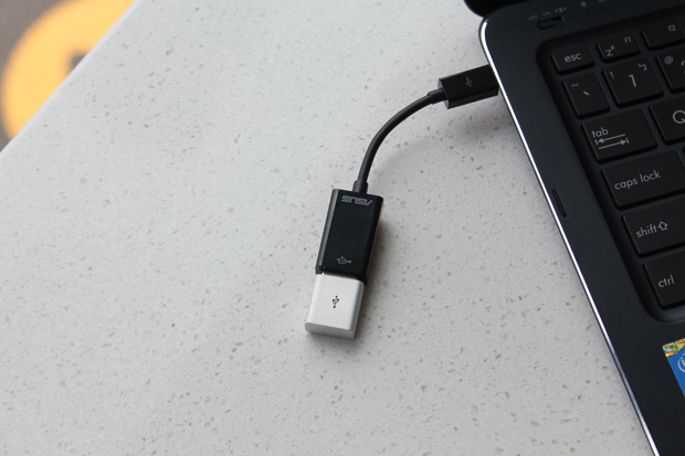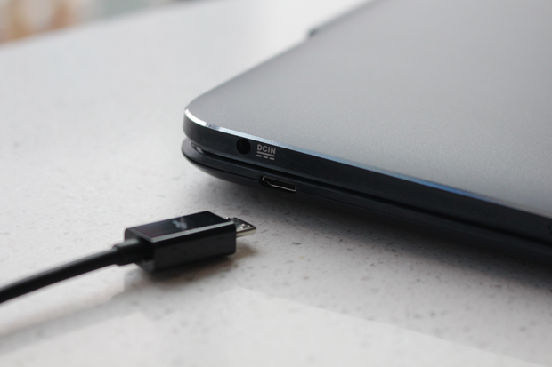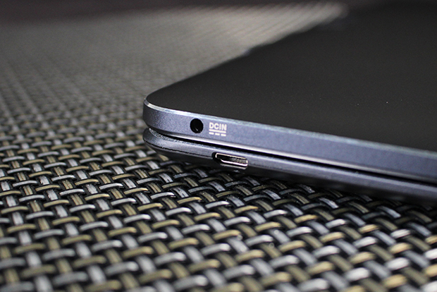 因為 T300 Chi 平板實在做得太薄了,所以下面也只夠配置小的 Micro USB 3.0 介面,不過我們可以用 ASUS 送的傳輸專用線來使用,安插在下面的鍵盤就可以了。