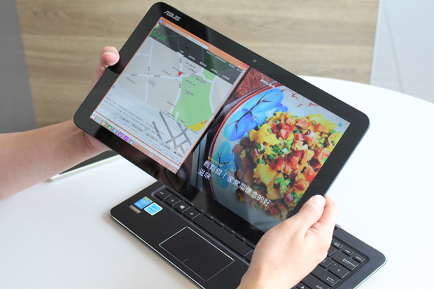 漂亮的 IPS 面板,在外面看也很舒服,並有 178 度的可視角,華碩自家的 ASUS TruVivid、ASUS Splendid 顯像技術,不管當筆電或平板,在閱讀上都很讚!