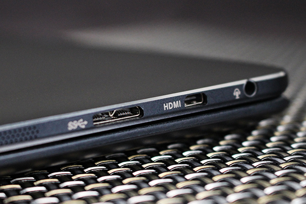 右側則是右聲道喇叭、Micro USB 3.0 連接埠、Micro HDMI 以及音源孔。