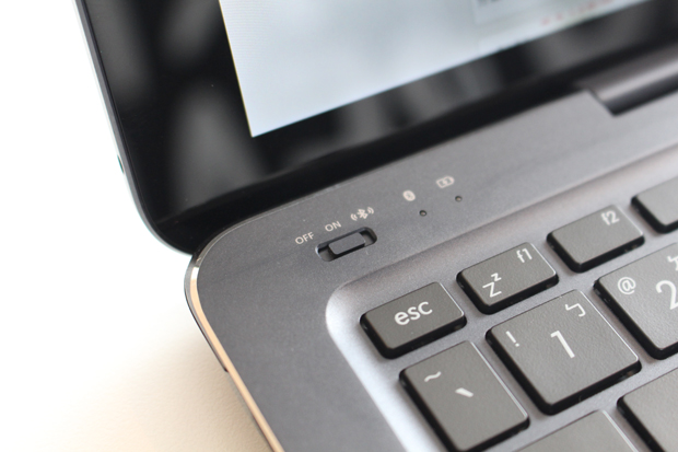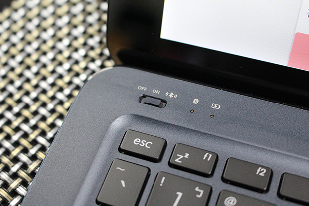 因為 ASUS Transformer Book T300 Chi 的鍵盤是「藍牙鍵盤」,裡面有自己的電池,左上方有鍵盤的藍牙開關,把平板電腦接上去時,只要簡單切換到 ON,鍵盤就會直接超快地幫我們自動連線。