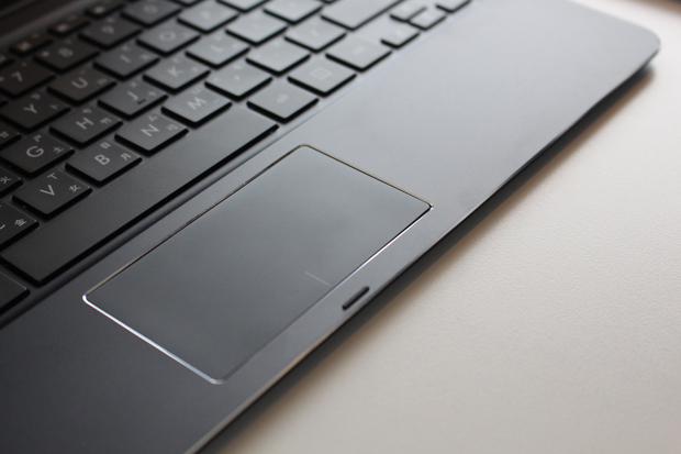 另外我自己很喜歡這個全平面式的觸控板,有大大的操作面積,多點觸控和相關手勢操作都沒有問題,下方區塊則是左右鍵。我覺得在觸控板的邊緣處細節 ASUS 也做得很好,連這裡也有鑽石切邊的設計,很講究!