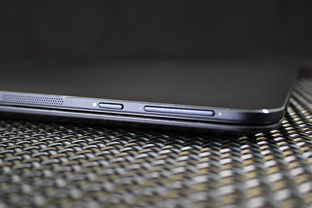 再來看一下左側的部份,分別為音量鍵、Windows 鍵和左聲道喇叭。