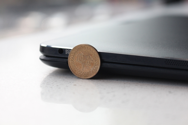 最厚的部分甚至比一塊錢還短(還記得以前其他家筆電是用十元硬幣來比…)